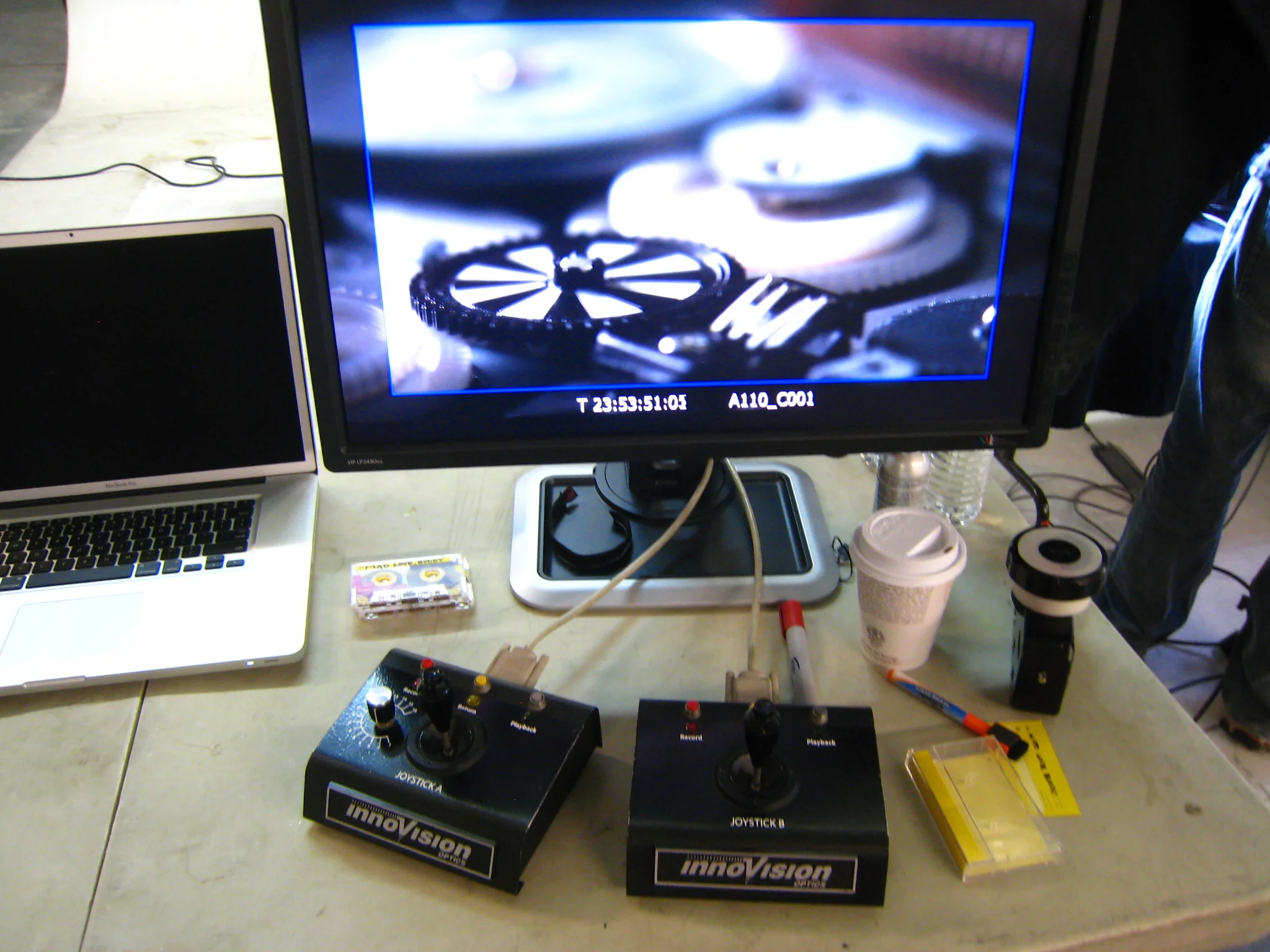 The joysticks used for moving the motion control rig. The focus remote is on the right.
