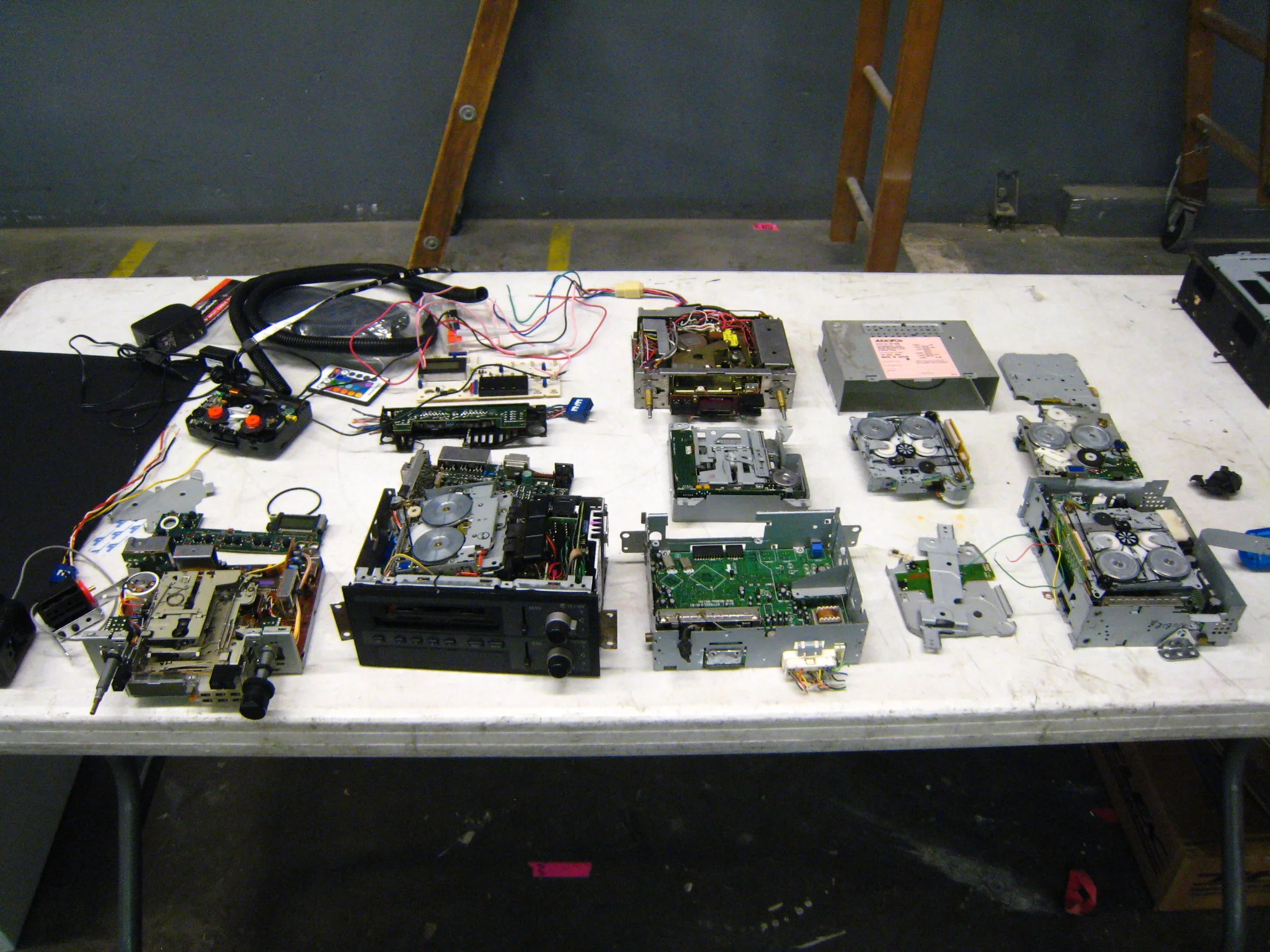 This was exactly the kind of thing I used to do all the time as a kid. I loved taking apart electronics and seeing what was inside. Jenny and I headed out to an auto scrap yard, and picked up a few tape decks. Here’s what we found: